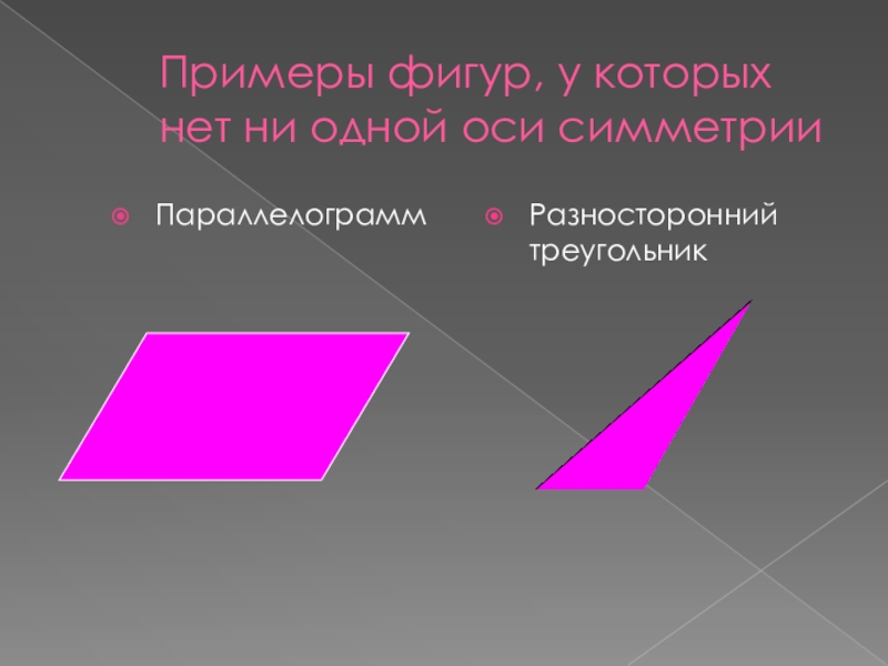 Слайд 31Примеры фигур, у которых нет ни одной оси симметрии