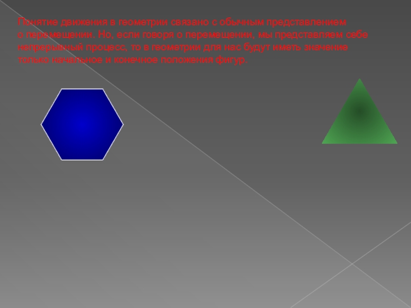 Слайд 4Понятие движения в геометрии связано с обычным представлением