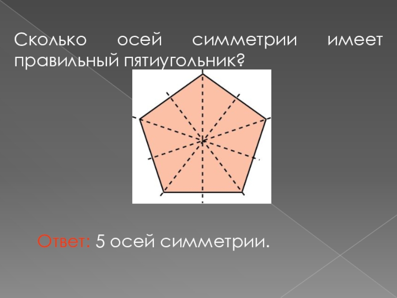 Слайд 30Сколько осей симметрии имеет правильный пятиугольник?