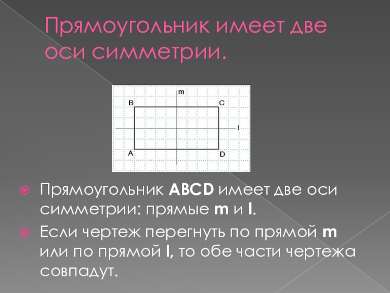Слайд 12Прямоугольник имеет две оси симметрии.