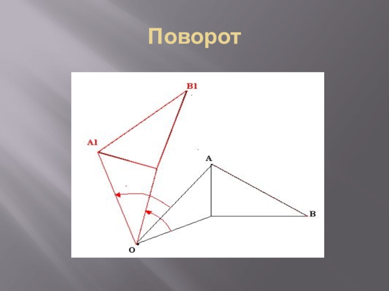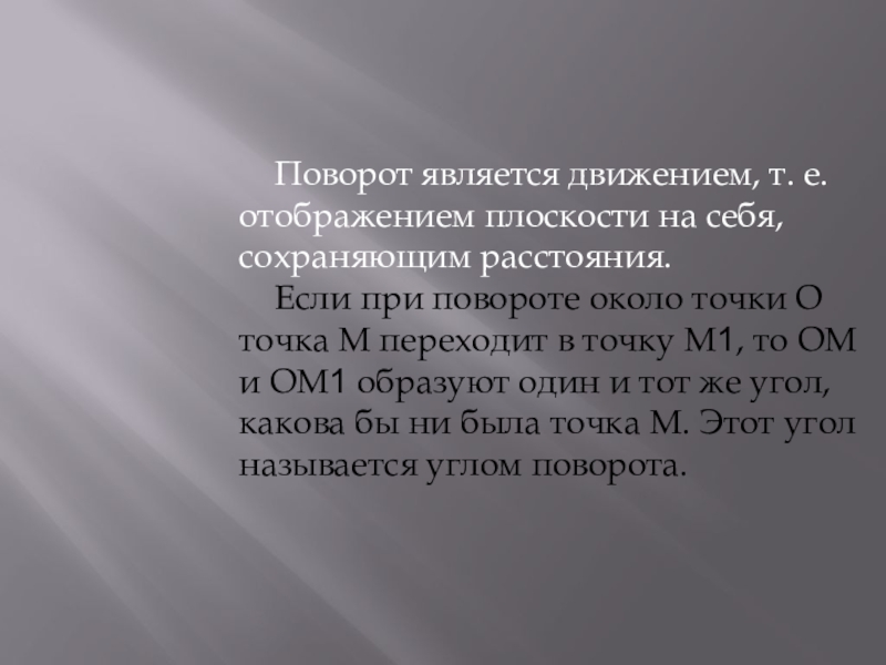 Слайд 40 Поворот является движением, т. е. отображением плоскости на себя, сохраняющим расстояния.