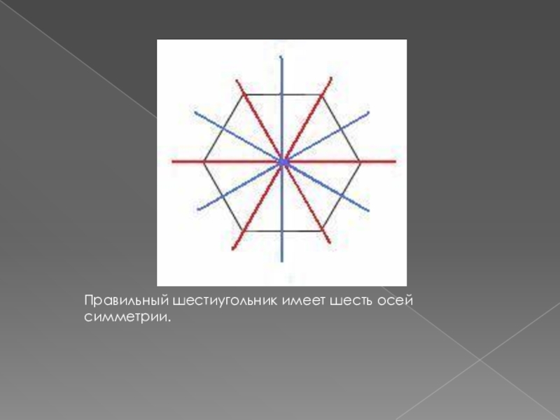 Слайд 29Правильный шестиугольник имеет шесть осей симметрии.