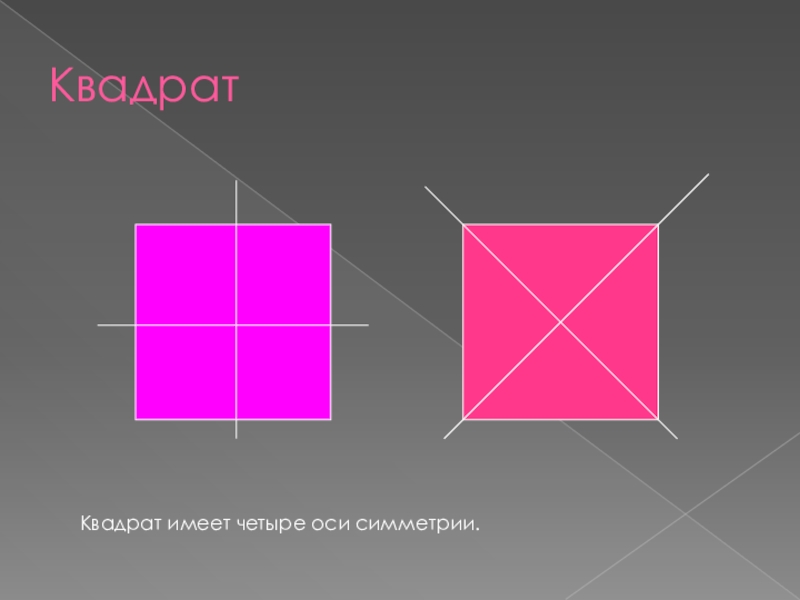 Слайд 13Квадрат имеет четыре оси симметрии.
