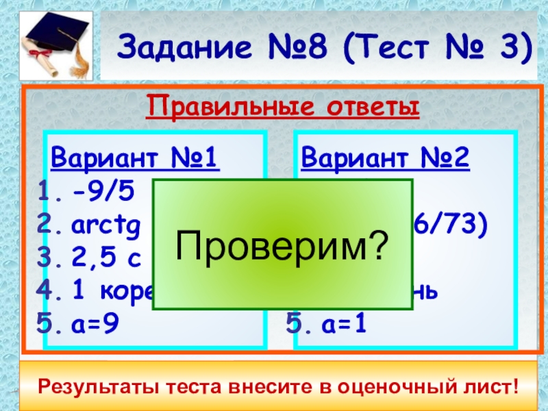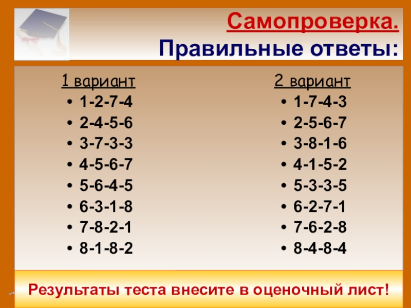 Результаты теста внесите в оценочный лист!