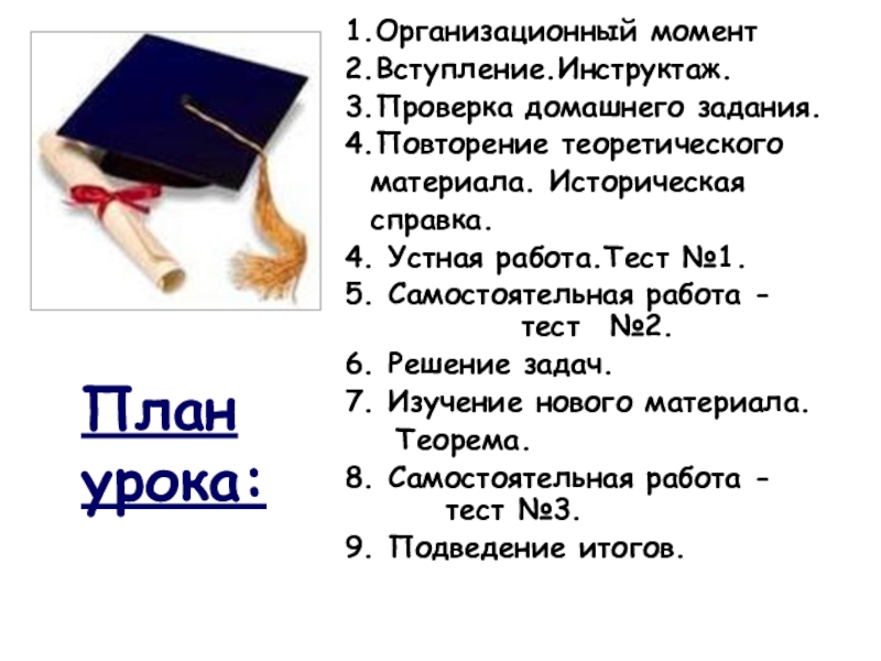 План урока:
