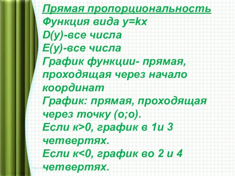 Прямой пропорциональностью называется функция, которую можно задать формулой вида у=kх,