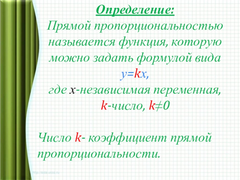 Число k- коэффициент прямой пропорциональности.