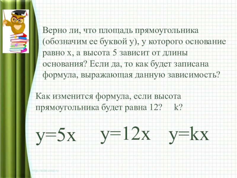 Слайд 22Верно ли, что площадь прямоугольника (обозначим ее буквой у), у которого