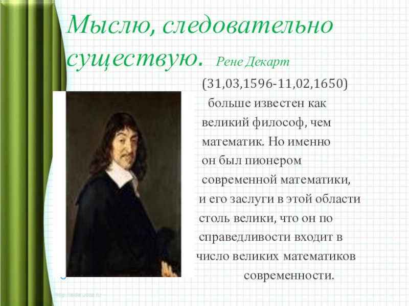 Мыслю, следовательно существую. Рене Декарт