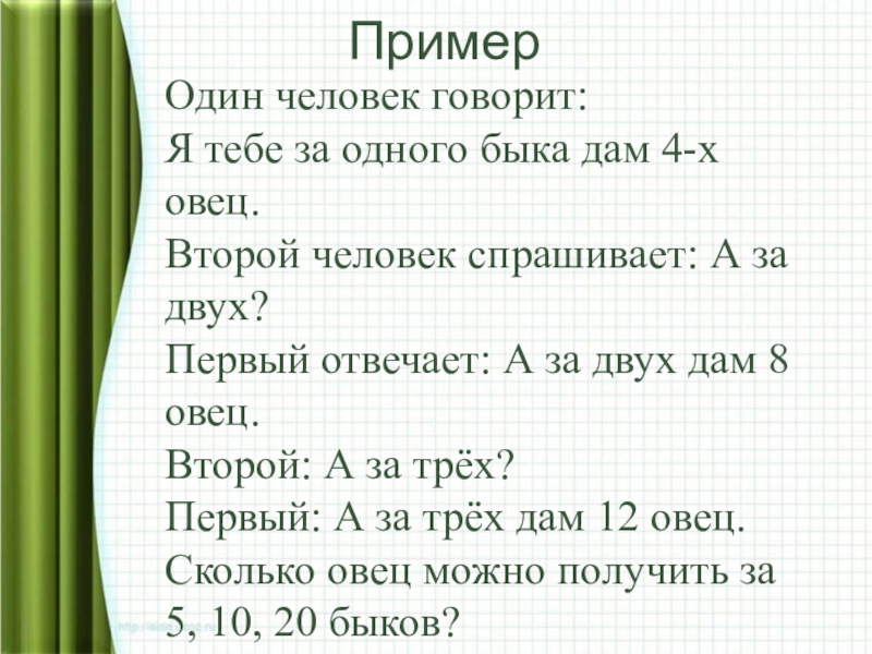 Сколько овец можно получить за 5, 10, 20 быков?
