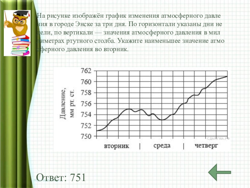 Слайд 5На рисунке изображён график изменения атмосферного давления в городе Энске за