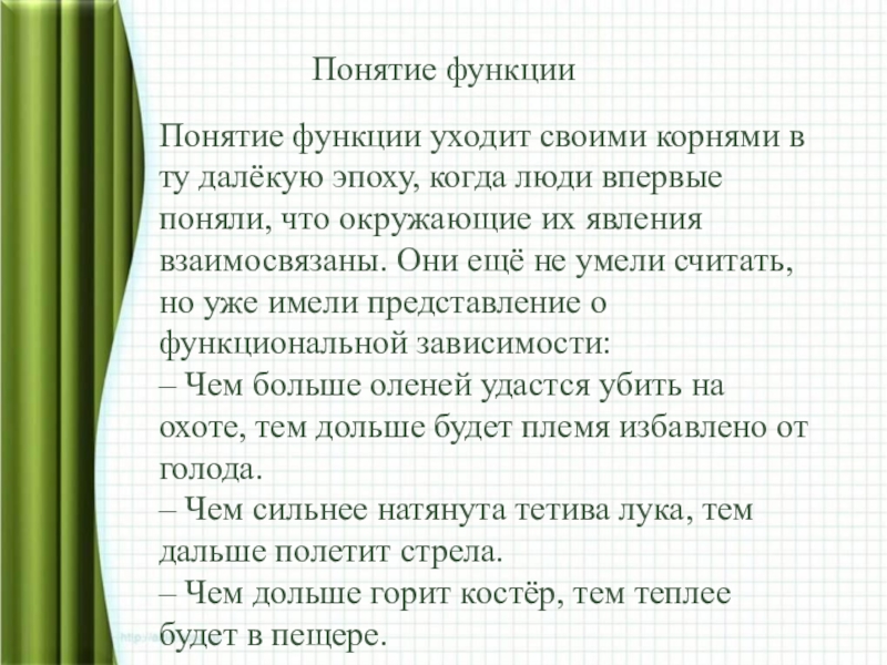 Понятие функции уходит своими корнями в ту далёкую эпоху, когда