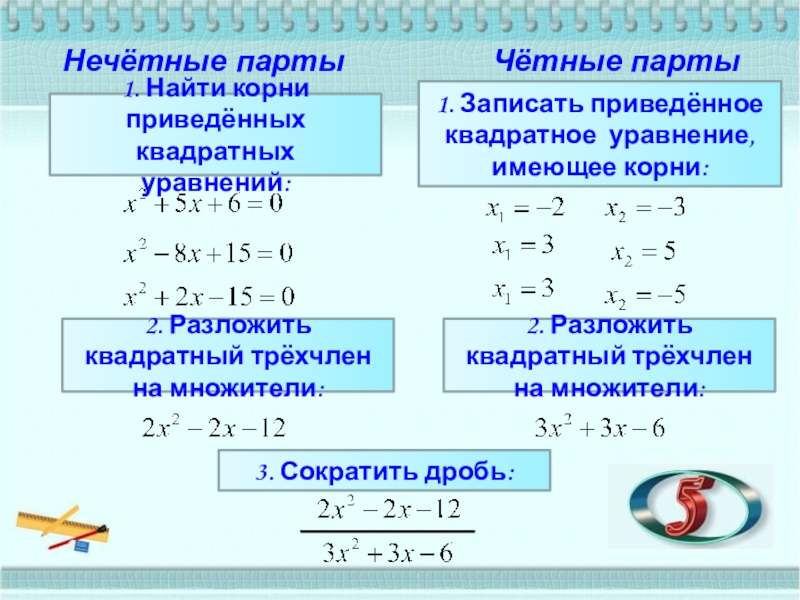 2. Разложить квадратный трёхчлен на множители: