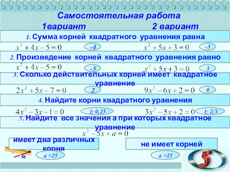 5. Найдите все значения а при которых квадратное уравнение
