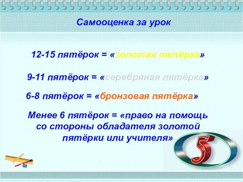 Менее 6 пятёрок = «право на помощь со стороны обладателя золотой пятёрки или учителя»