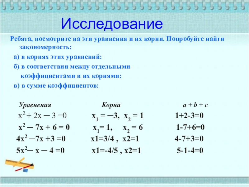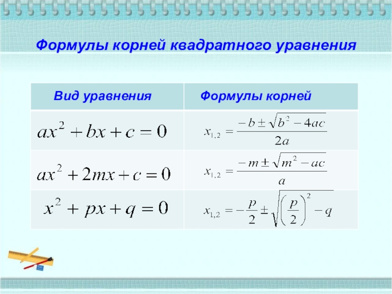 Формулы корней