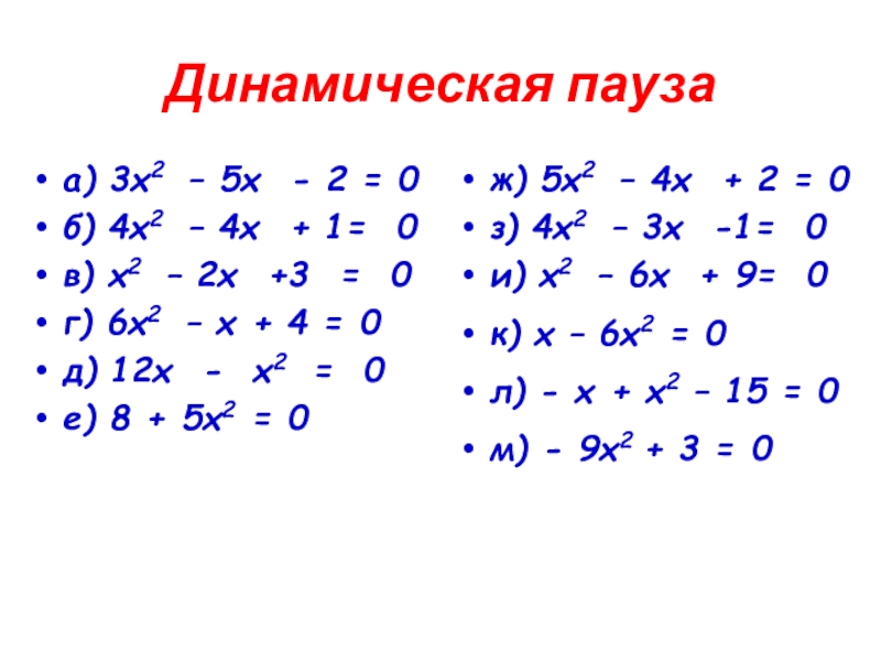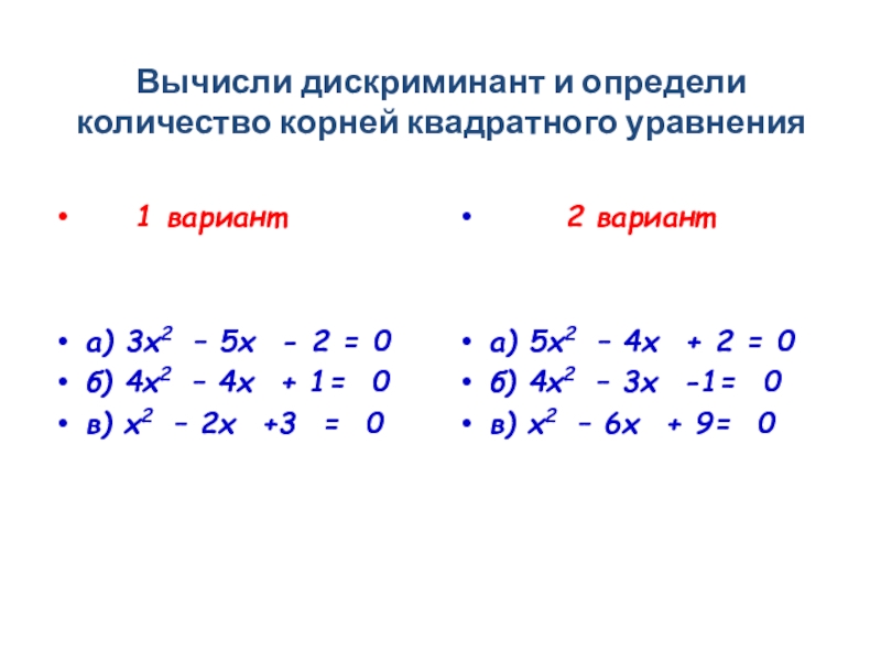 а) 5х2 – 4х + 2 = 0