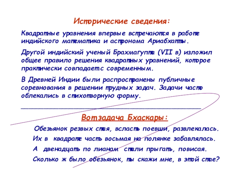 квадратного уравнения: