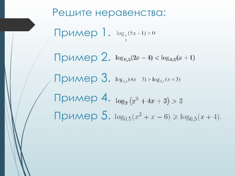 Пример 1. Пример 2. Решите неравенства:Пример 3. Пример 4. Пример 5.