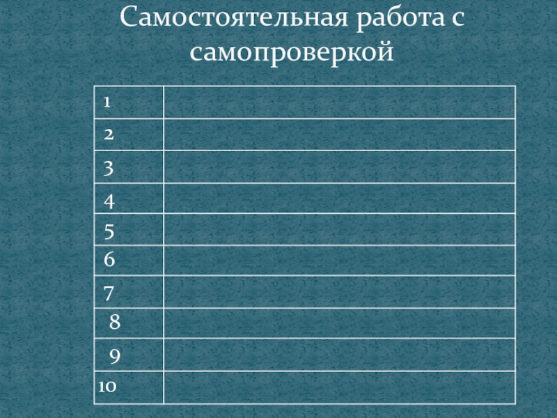 Слайд 7Самостоятельная работа с самопроверкой