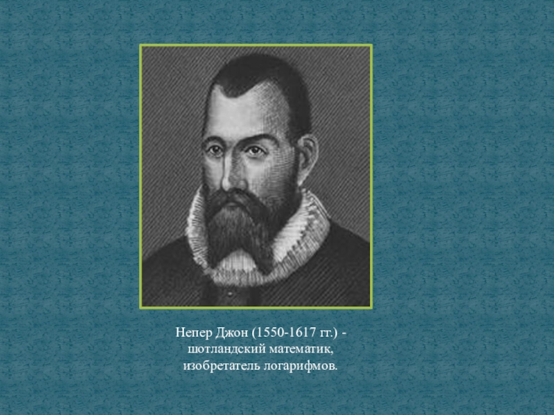 Слайд 9Непер Джон (1550-1617 гг.) - шотландский математик, изобретатель логарифмов.