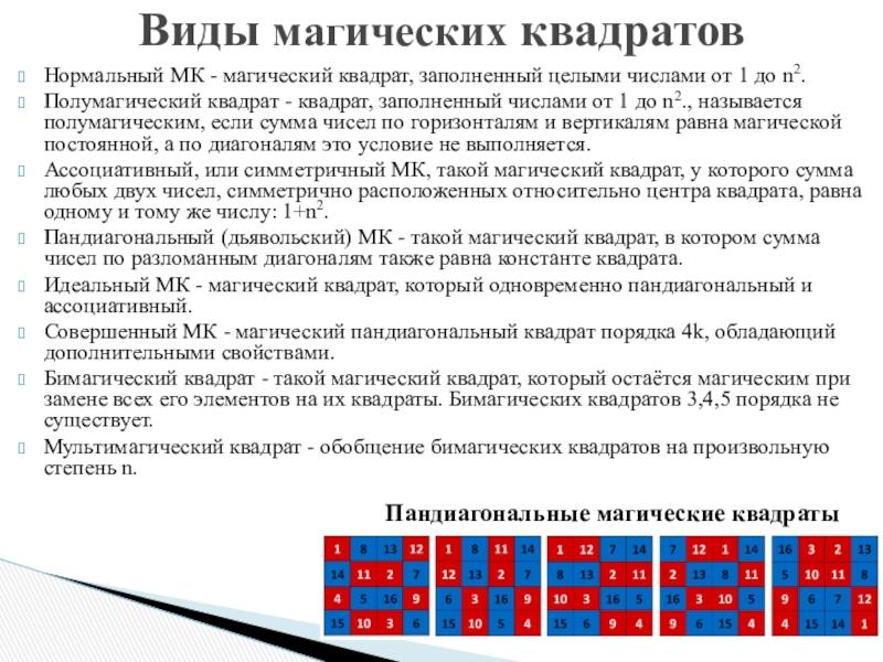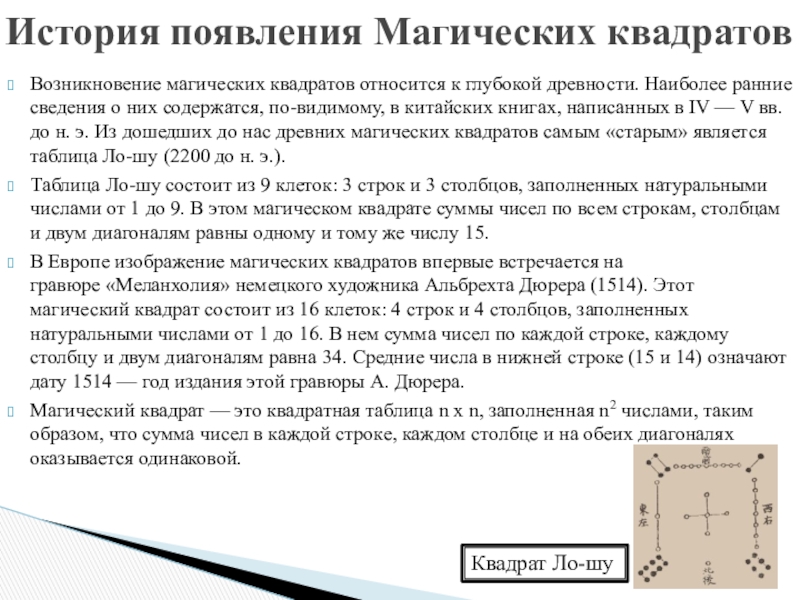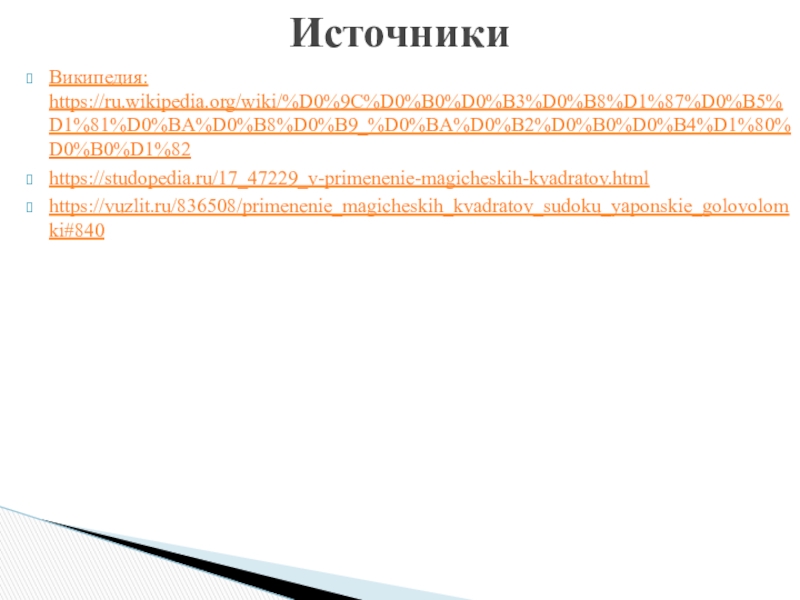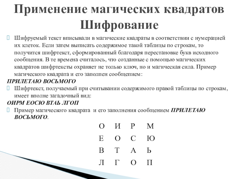 Применение магических квадратов