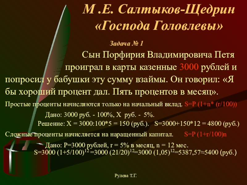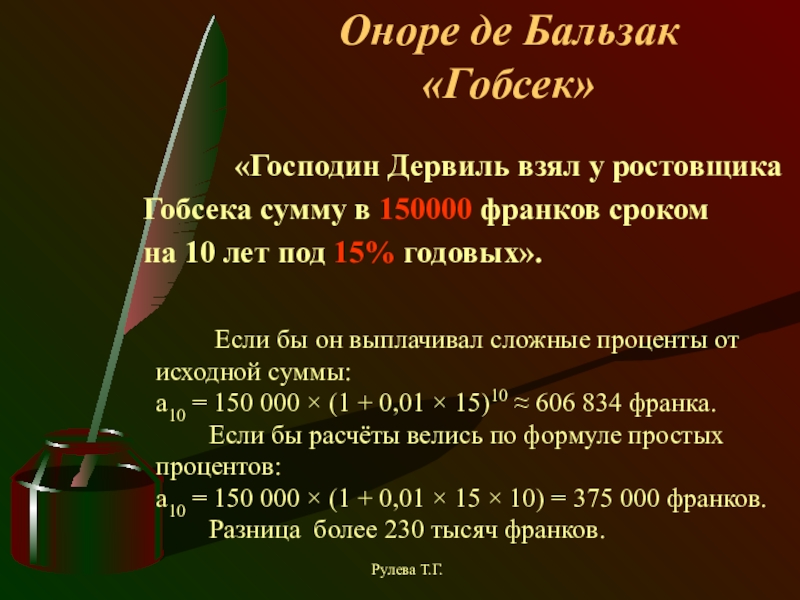 a10 = 150 000 × (1 + 0,01 × 15)10 ≈ 606 834 франка.