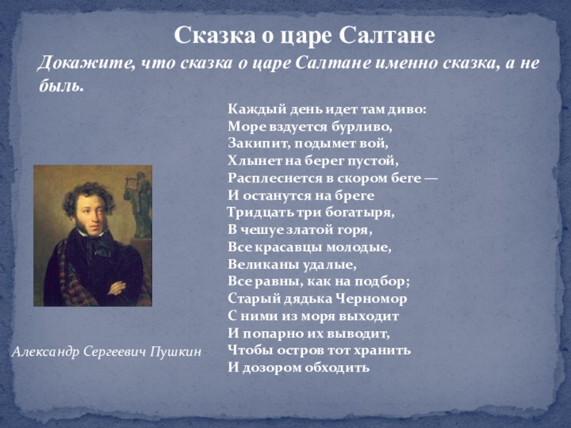 Докажите, что сказка о царе Салтане именно сказка, а не быль.