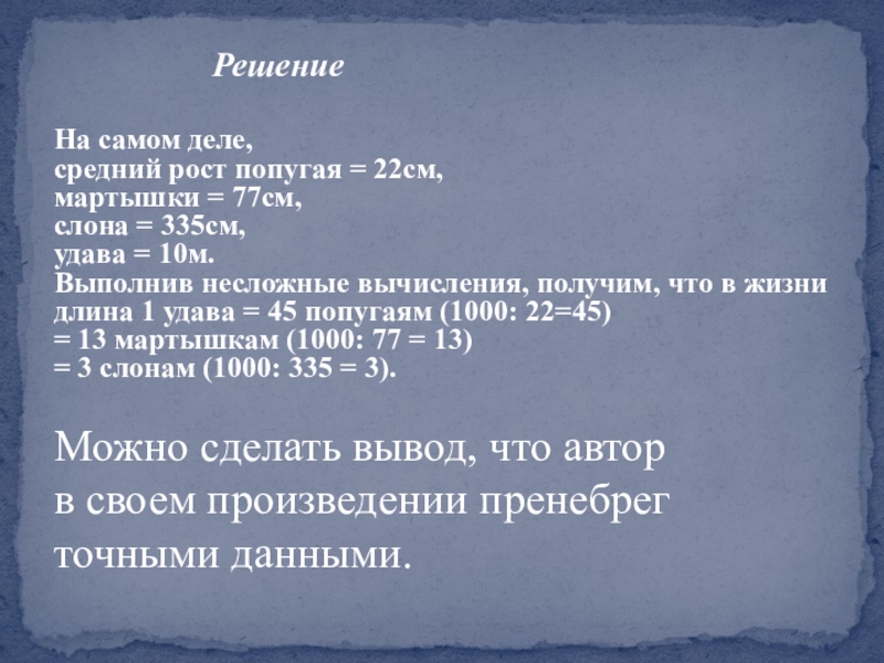 Можно сделать вывод, что автор в своем произведении пренебрег точными данными.