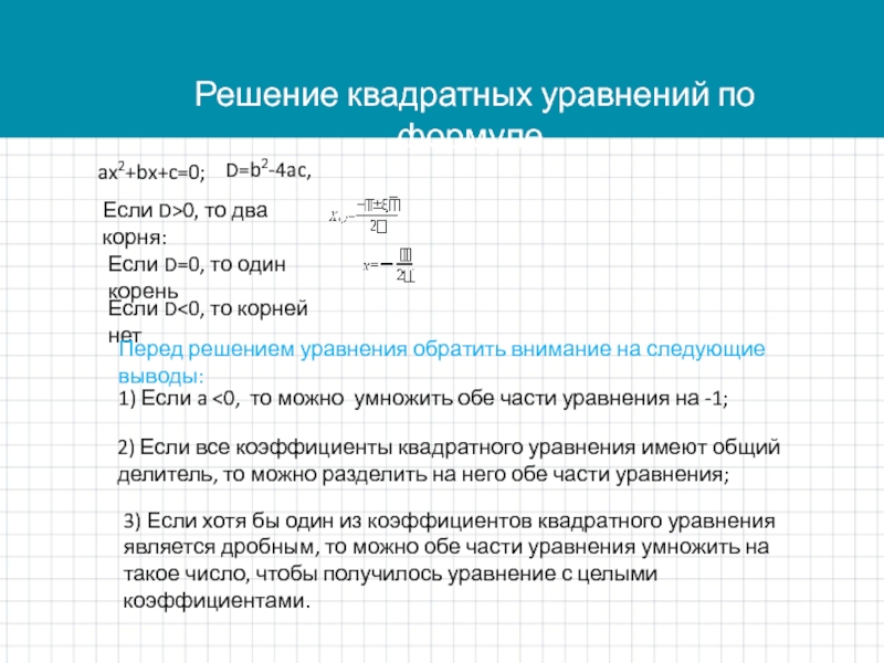 2) Если все коэффициенты квадратного уравнения имеют общий делитель, то можно разделить на него обе части уравнения;