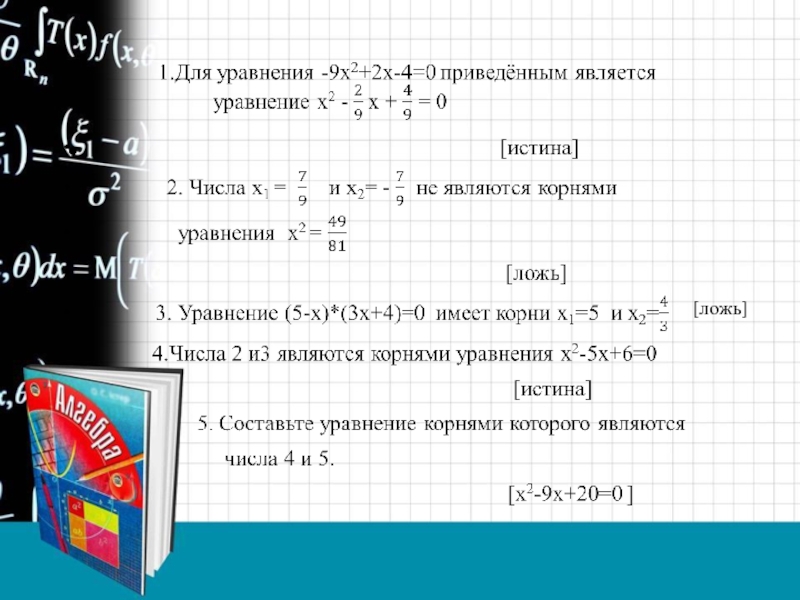 3) Если хотя бы один из коэффициентов квадратного уравнения является дробным, то можно обе части уравнения умножить на такое число, чтобы получилось уравнение с целыми коэффициентами.