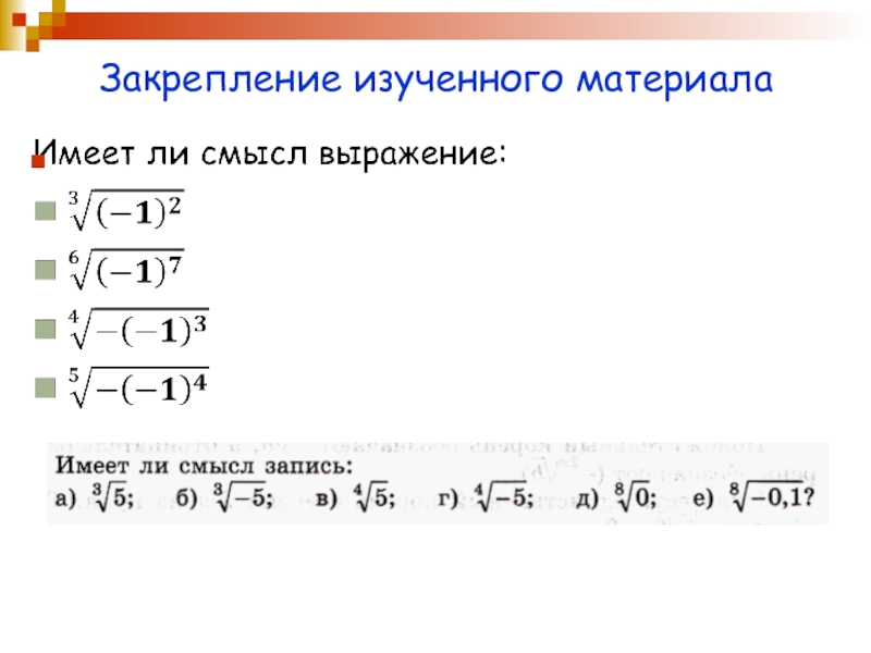 Презентация, доклад по теме Определение корня n-ой степени (10 класс) по учебнику Никольского