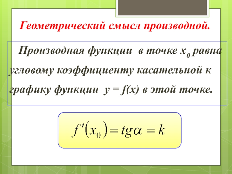 Пусть дан график функции f(х) и касательная, проходящая через точку М0 ,которая образует с положительным направлением оси ОХ угол φ