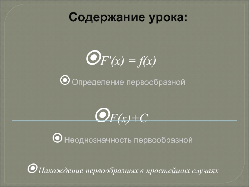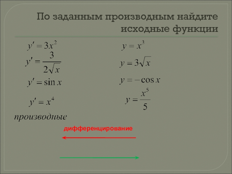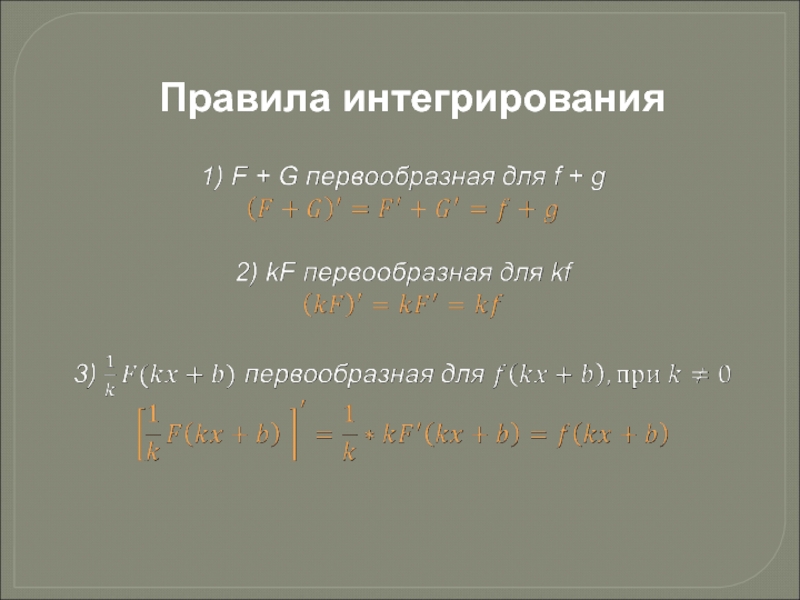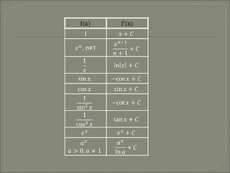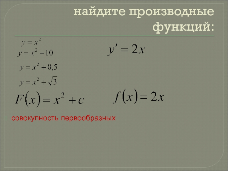 y = f(x) имеет бесконечно много первообразных вида y = F(x)+C, где