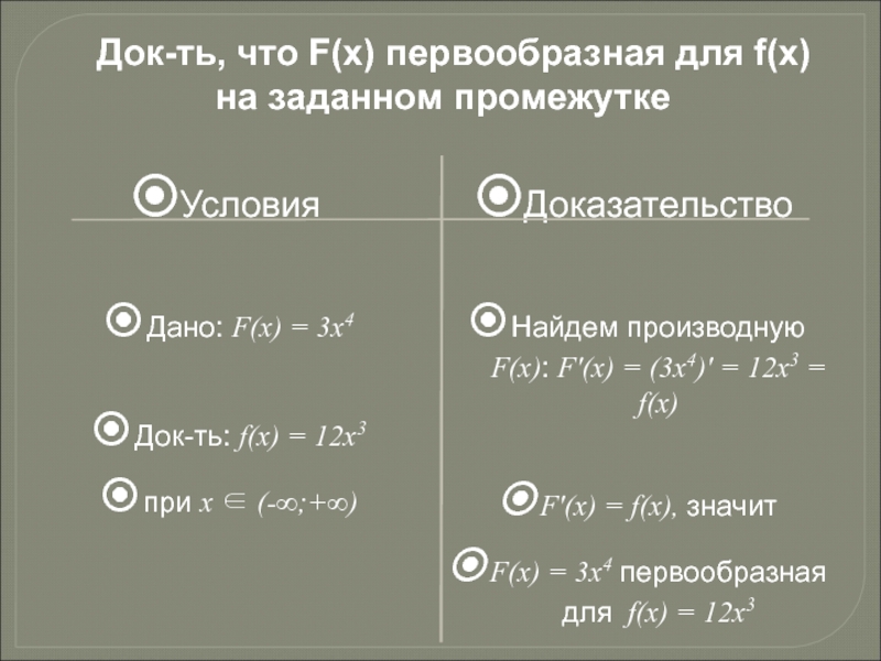 F(x) = 3x4 первообразная для f(x) = 12x3