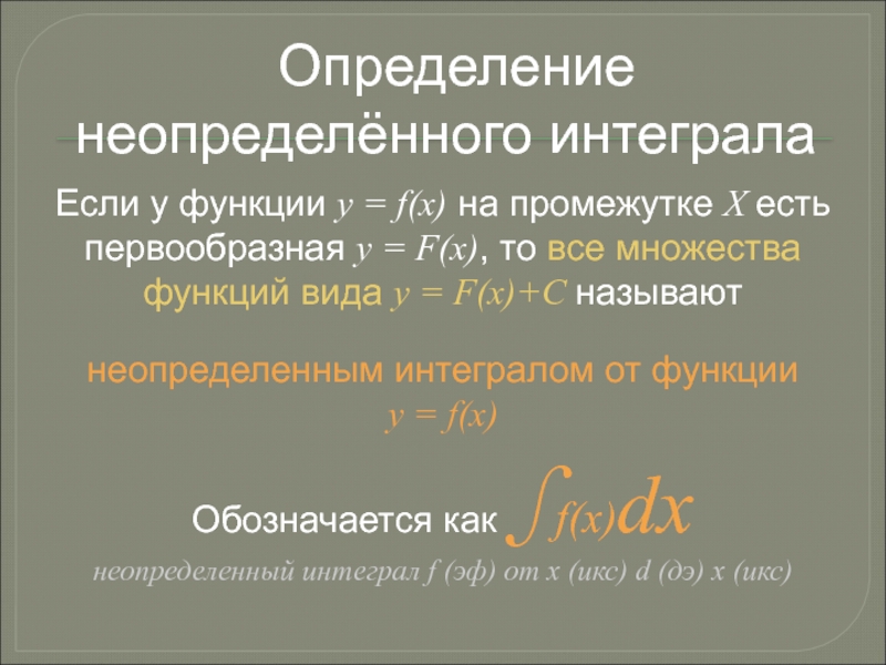 неопределенный интеграл f (эф) от x (икс) d (дэ) x (икс)
