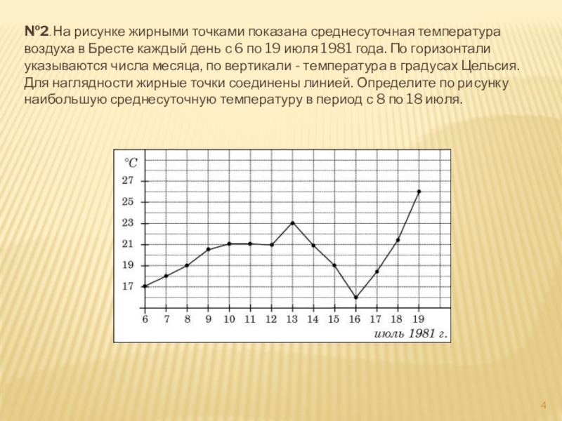 Слайд 4№2. На рисунке жирными точками показана среднесуточная температура воздуха в Бресте