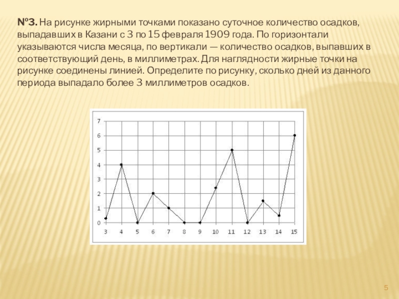 Слайд 5№3. На рисунке жирными точками показано суточное количество осадков, выпадавших в