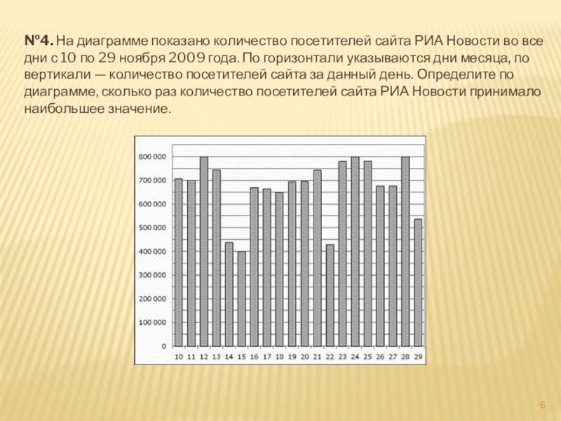 Слайд 6№4. На диаграмме показано количество посетителей сайта РИА Новости во все