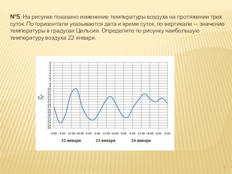 Слайд 7№5. На рисунке показано изменение температуры воздуха на протяжении трех суток.