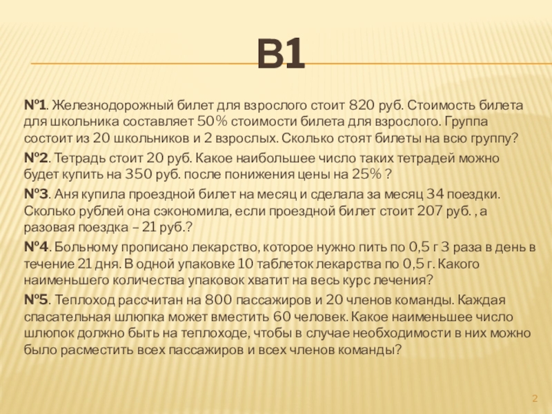 №1. Железнодорожный билет для взрослого стоит 820 руб. Стоимость билета для