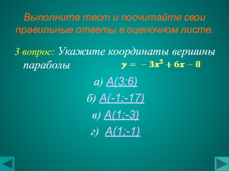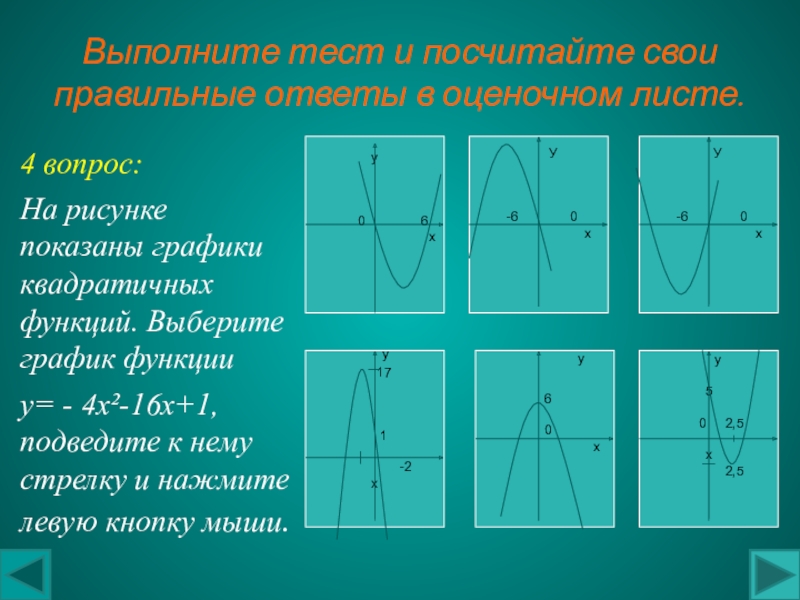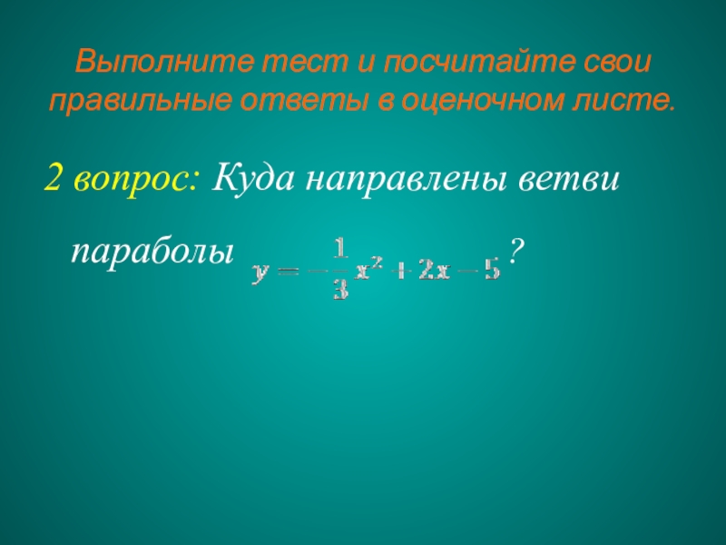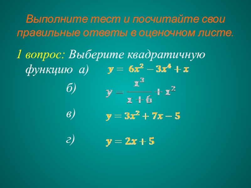 Выполните тест и посчитайте свои правильные ответы в оценочном листе.