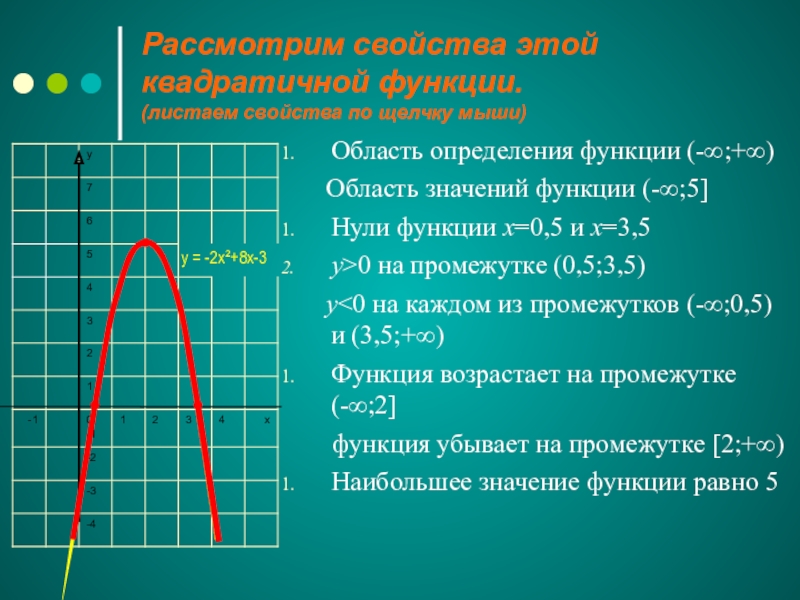 у= -7х²-х+3 – графиком является парабола, ветви которой направлены вниз (т.к. а=-7, а<0).