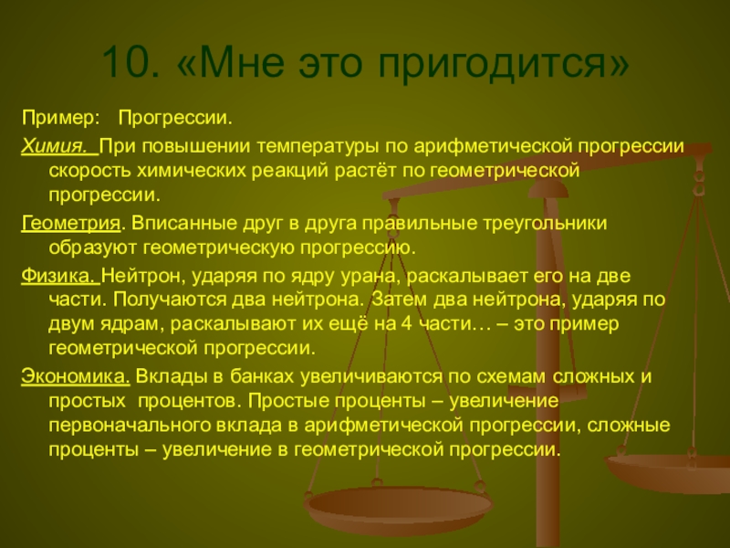 Экономика. Вклады в банках увеличиваются по схемам сложных и простых процентов. Простые проценты – увеличение первоначального вклада в арифметической прогрессии, сложные проценты – увеличение в геометрической прогрессии.