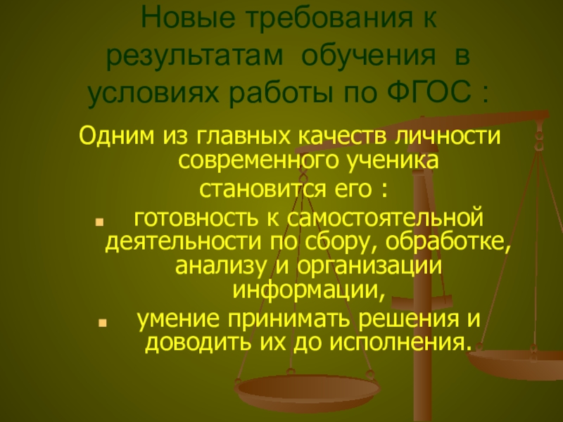 Слайд 3Новые требования к результатам обучения в условиях работы по ФГОС :