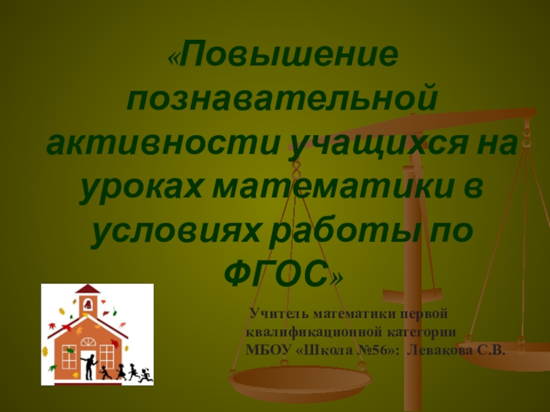Слайд 1«Повышение познавательной активности учащихся на уроках математики в условиях работы по