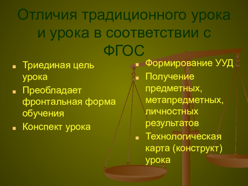 Отличия традиционного урока и урока в соответствии с ФГОС