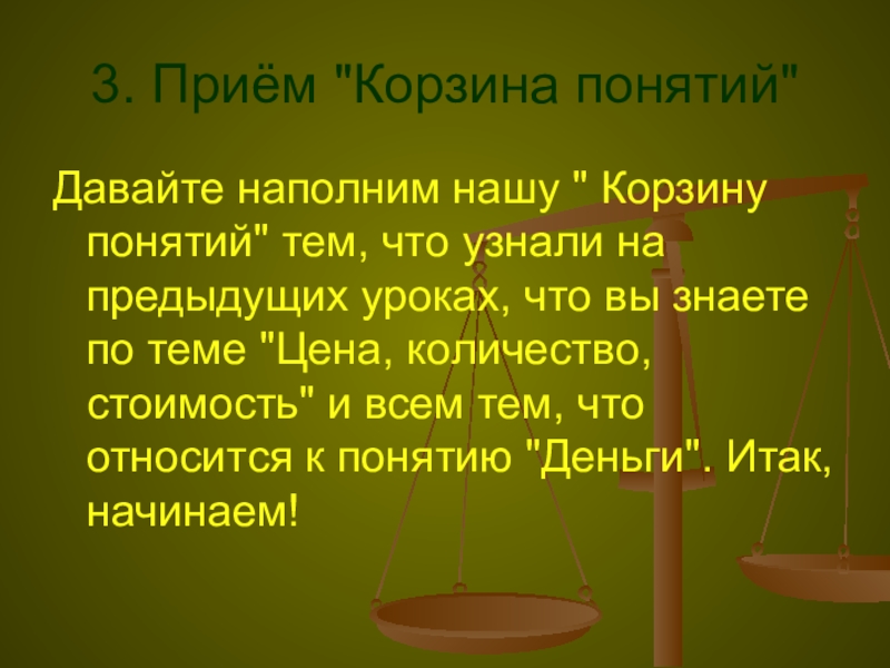 узнали на предыдущих уроках, что вы знаете по теме "Цена, количество, стоимость" и всем тем, что относится к понятию "Деньги". Итак, начинаем!