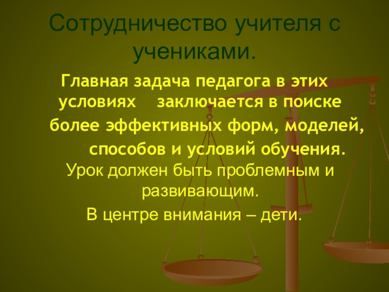 способов и условий обучения. Урок должен быть проблемным и развивающим.