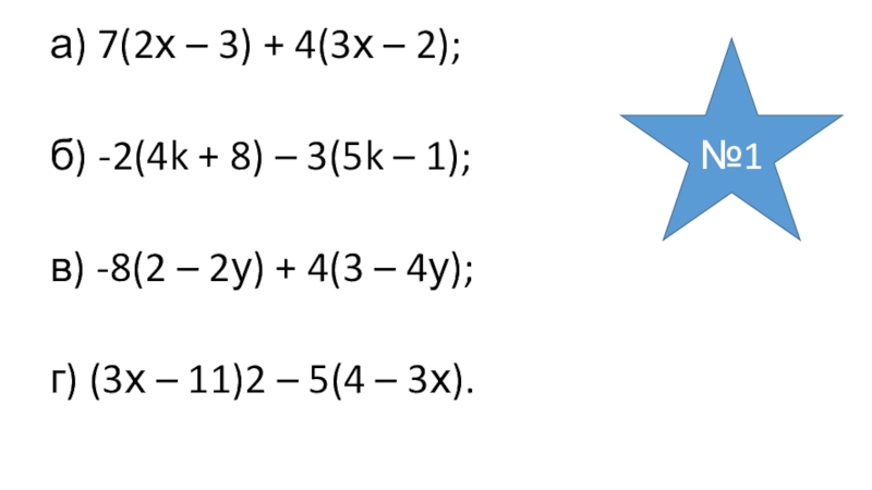 б) -5(х + 3) + 4(х – 2) – 6(2х + 1);
